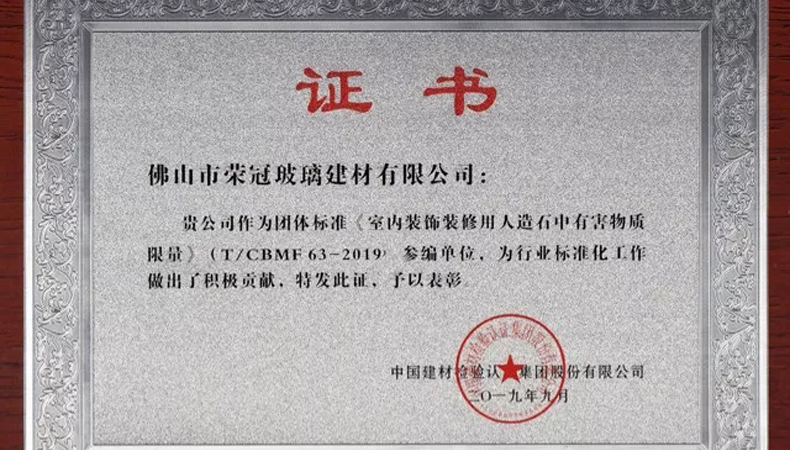 由佛山市榮冠玻璃建材有限公司參編的《室內(nèi)裝飾裝修用人造石中有...